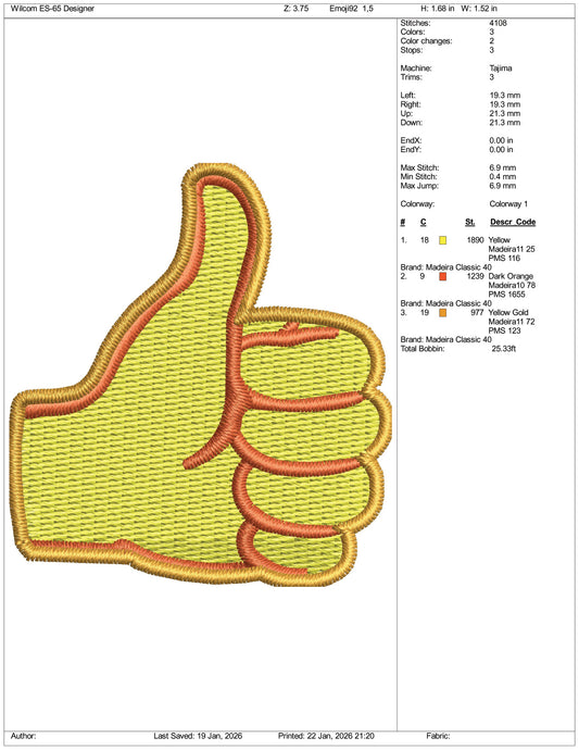 Thumbs Up Emoji Embroidery Design Files - 3 Size's