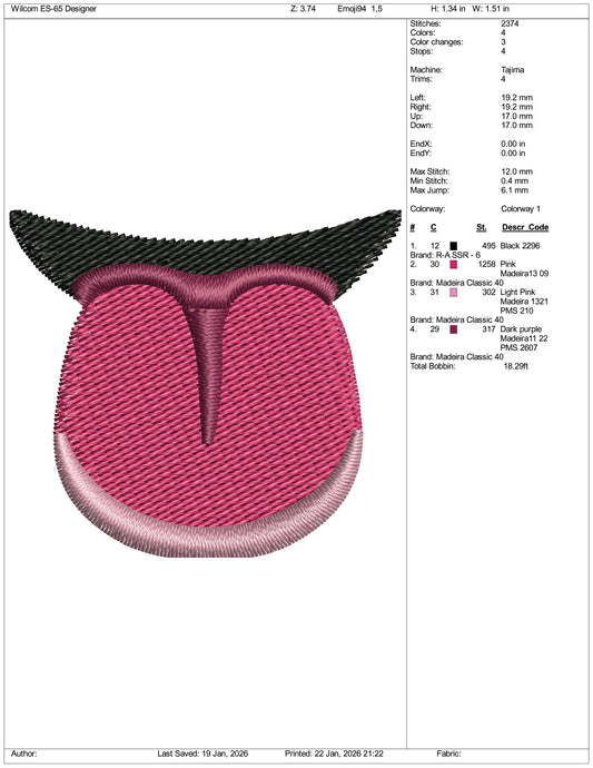Tongue Emoji Embroidery Design Files - 3 Size's