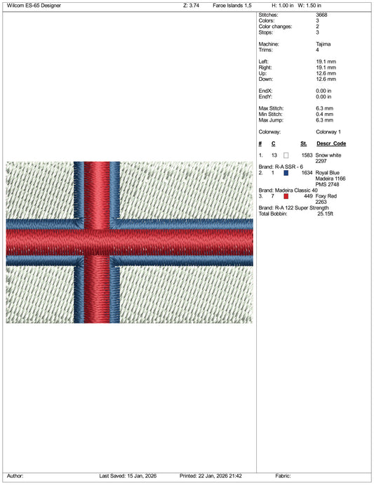 Faroe Islands Flag Embroidery Design Files - 3 Size's