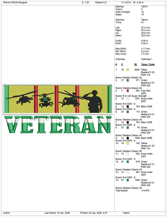 Veteran Embroidery Design Files - 3 Size's