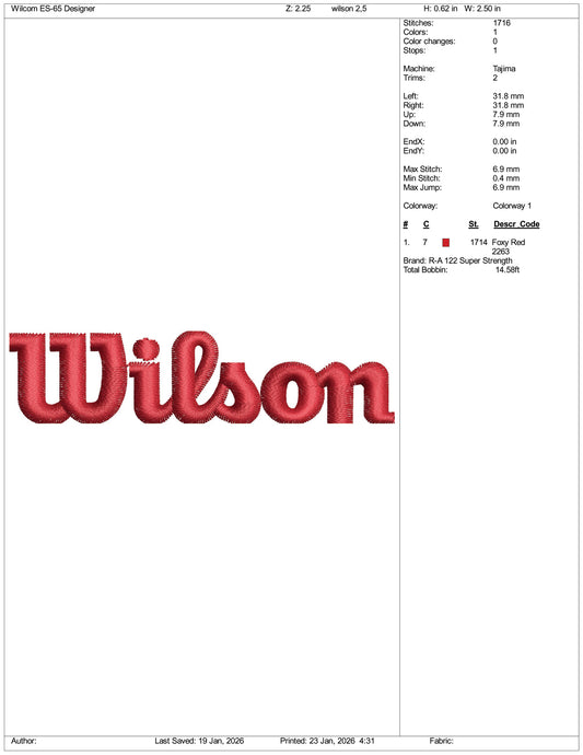 Wilson Embroidery Design Files - 4 Size's