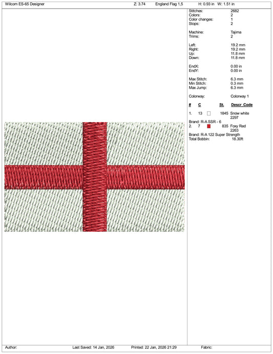England Flag Embroidery Design Files - 3 Size's