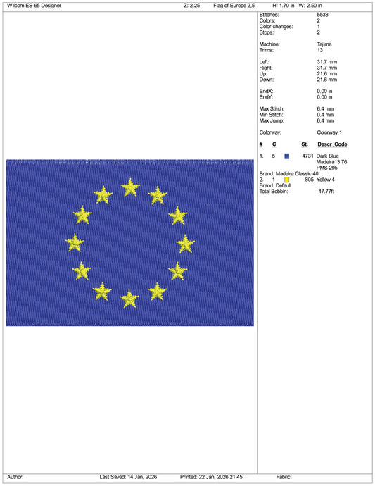 Europe Flag Embroidery Design Files - 3 Size's
