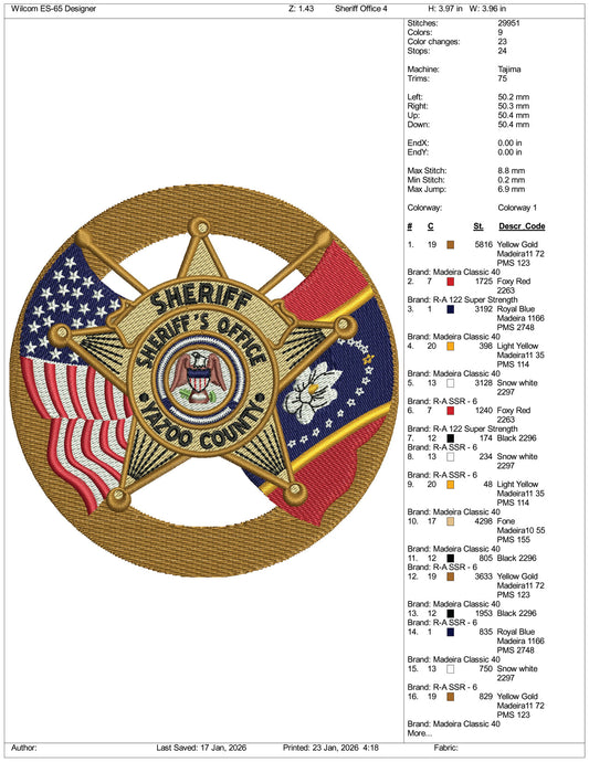 Sheriff Office Embroidery Design Files - 3 Size's