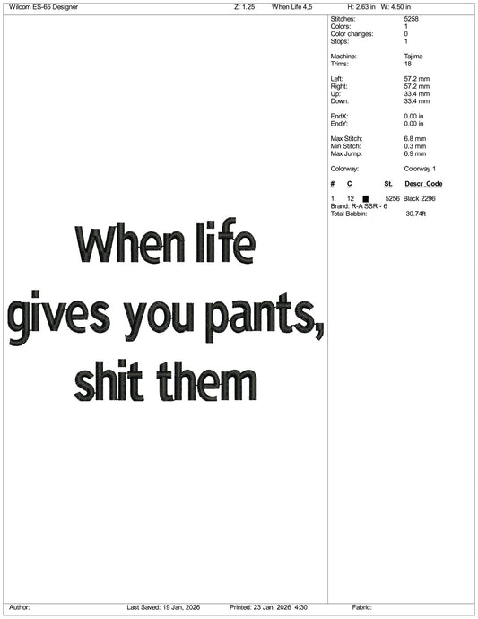 When life Gives You Pants Shit Them Embroidery Design Files - 3 Size's