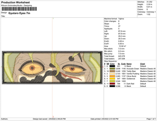 Gyutaro Eye Embroidery Design Files - 3 Sizes
