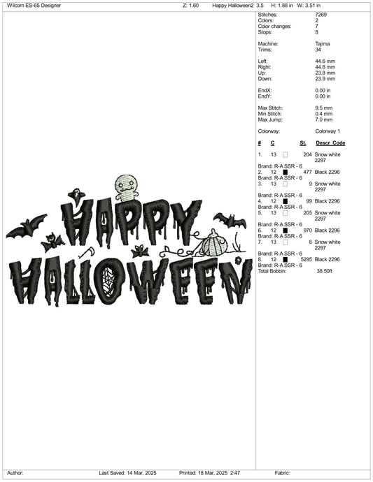 Happy Halloween v3 Embroidery Files - 3 Size's