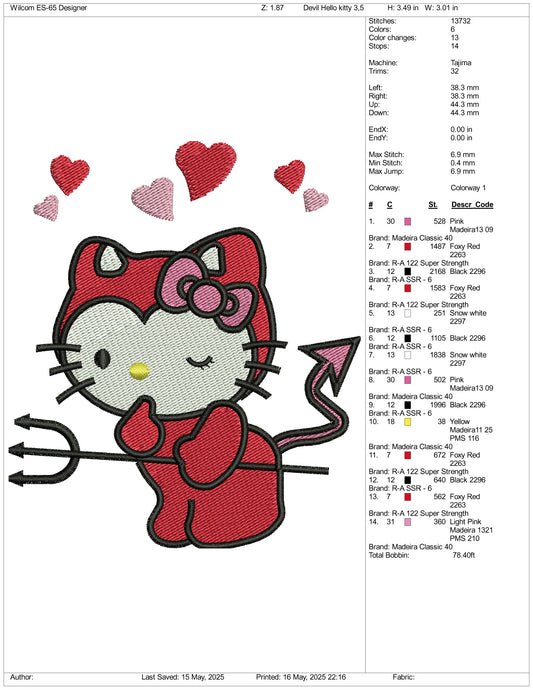 Hello kitty Devil Embroidery Design Files - 3 Size's