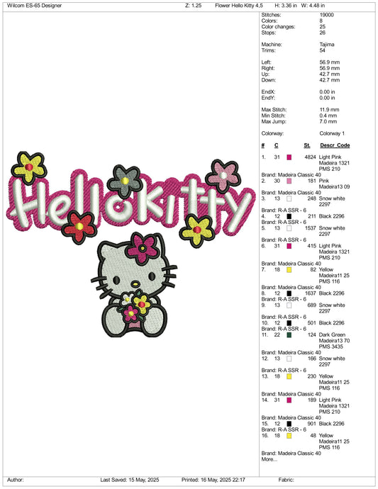 Hello Kitty Flower Embroidery Design Files - 3 Size's