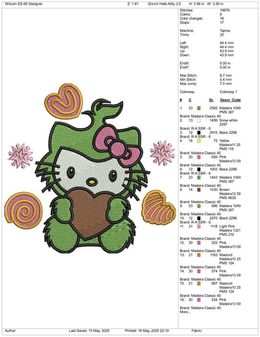 Hello Kitty Grinch Embroidery Design Files - 3 Size's