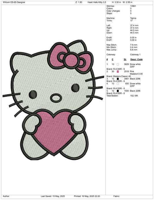 Hello Kitty Heart Embroidery Design Files - 3 Size's