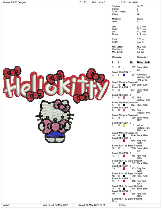 Hello Kitty Embroidery Design Files - 3 Size's