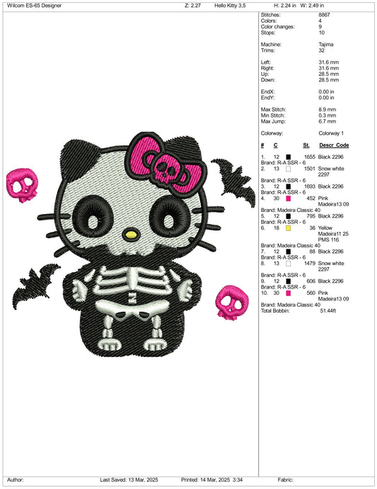 Hello Kitty Skull Embroidery Files - 3 Size's