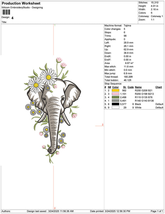 Elephant in Bloom Embroidery Design Files - 9 Size's