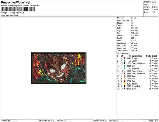 Angry Tanjiro Embroidery Design Files - 4 Size's