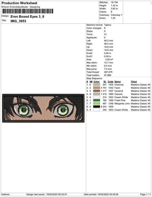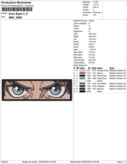Eren Yeager Eyes Embroidery Design Files - 3 Size's
