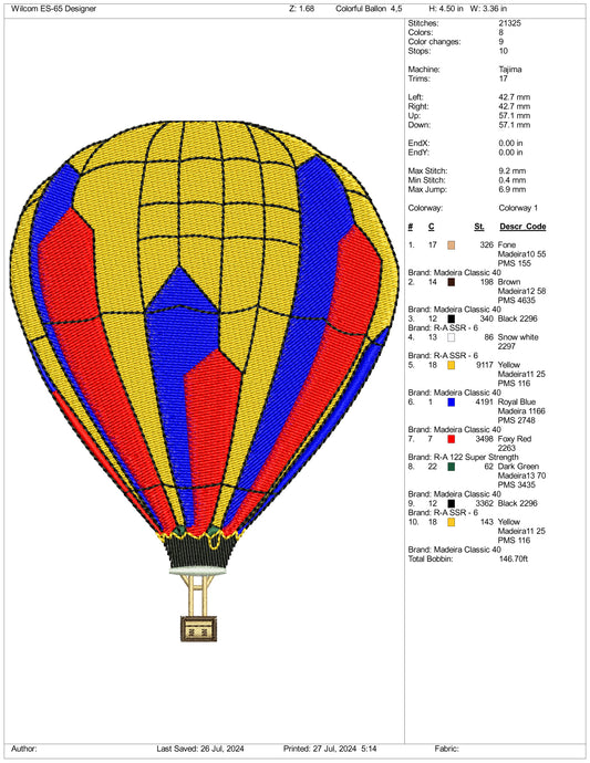 Hot Air Balloons Embroidery Design Files - 3 Size's