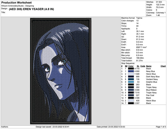 Eren Yeager v11 Embroidery Design Files - 4 Size's