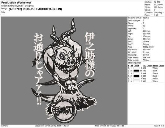 Inosuke Hashibira Embroidery Design Files - 4 Size's