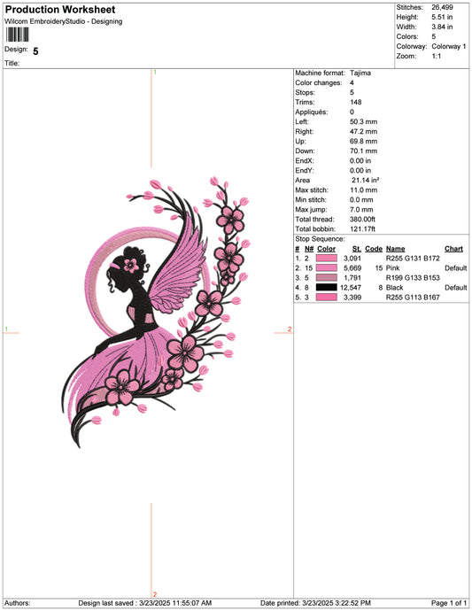 Fairy in Pink Dress Embroidery Design Files - 9 Size's