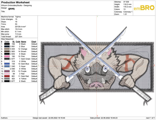 Inosuke Hashibira v6 Embroidery Design Files - 3 Size's