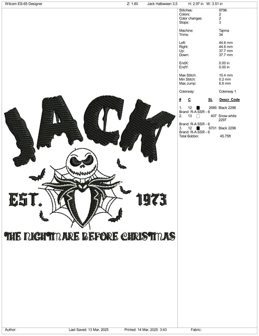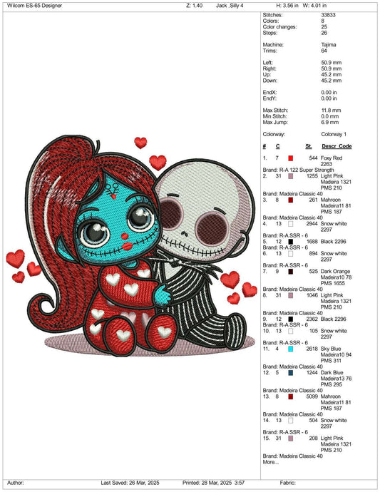 Jack & Sally Baby Embroidery Design Files - 3 Size's