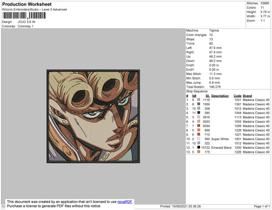 JoJo Bizarre Adventure Embroidery Design Files - 4 Size's