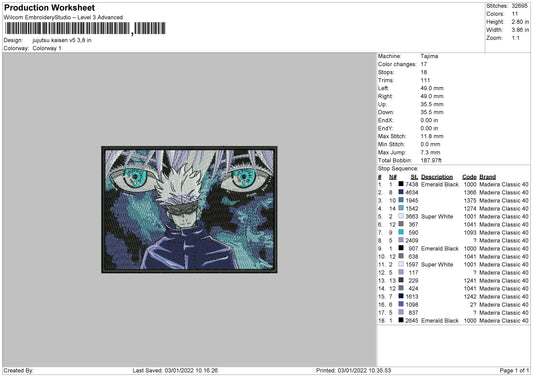 Jujutsu Kaisen v11 Embroidery Design Files - 4 Size's