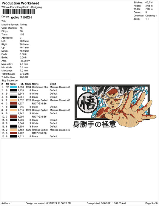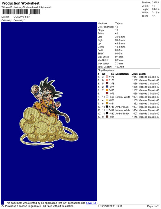 Goku Dragon Ball Embroidery Design Files - 4 Size's