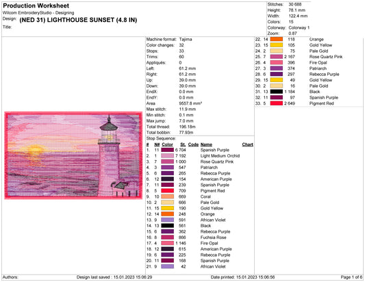 Lighthouse Sunset Embroidery Design Files - 3 Size's