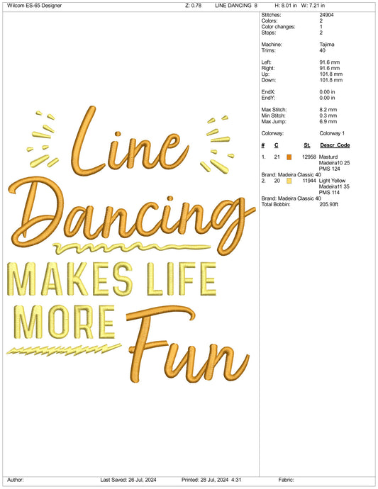 Line Dancing Makes Life More Fun Embroidery Files - 3 Size's