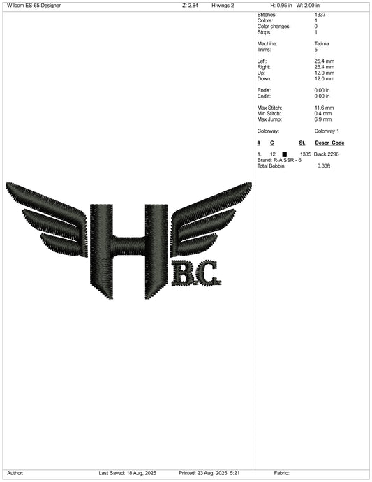 HBC Embroidery Files - 2 Size's