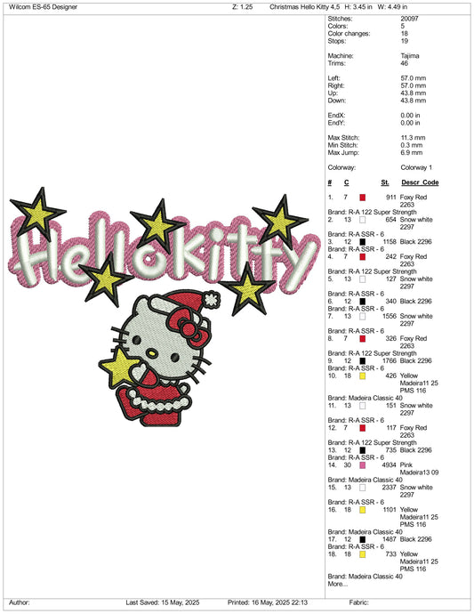 Hello Kitty Santa Embroidery Design Files - 3 Size's