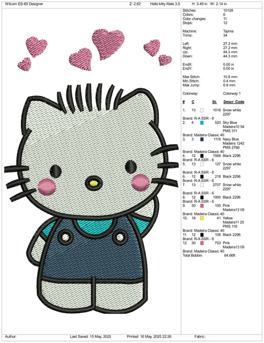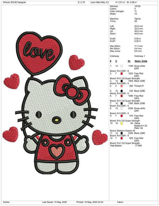Hello Kitty Love Embroidery Design Files - 3 Size's