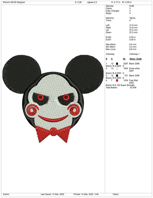 Mickey Mouse SAW Clown Embroidery Files - 3 Size's