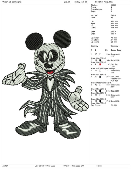 Mickey Mouse Jack Cosplay Embroidery Files - 3 Size's