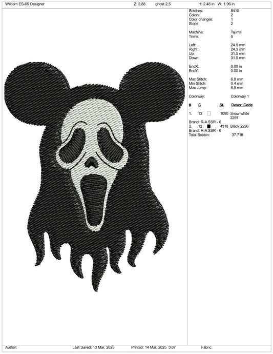 Mickey Mouse Ghost v2 Embroidery Files - 3 Size's