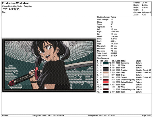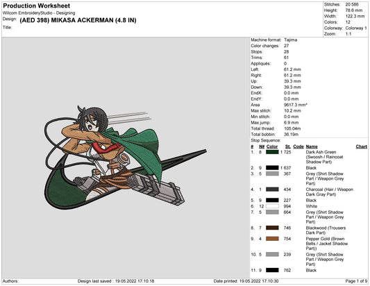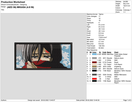 Mikasa Ackerman v5 Embroidery Design Files - 5 Size's