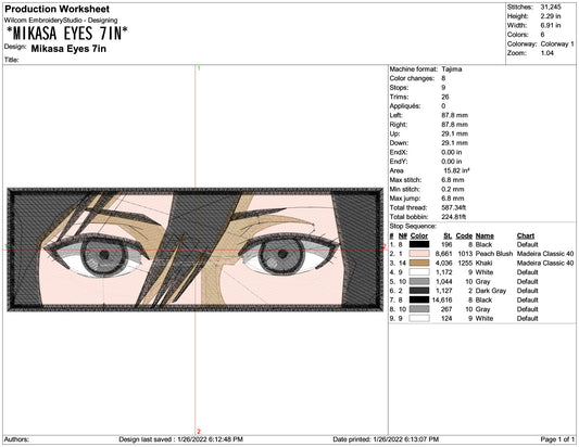 Mikasa Ackerman Eyes Embroidery Design Files - 3 Size's