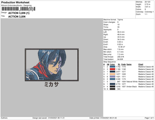 Mikasa Ackerman v3 Embroidery Design Files - 4 Size's