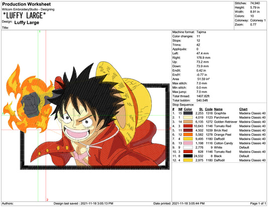 Monkey D Luffy 2v Embroidery Design Files - 3 Size's