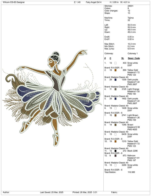 Modern Princess Ariel v2 Embroidery Design Files - 3 Size's