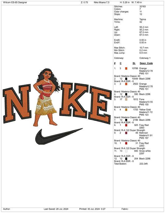 Nike Moana Embroidery Design Files - 3 Size's