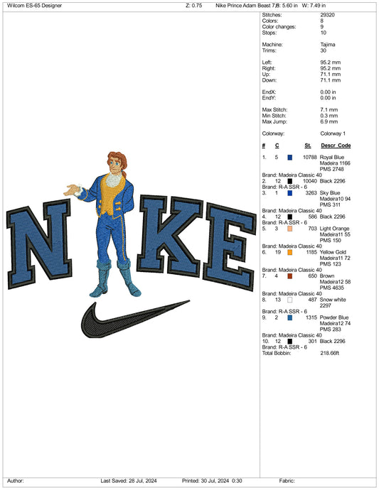 Nike Prince Adam Beast Embroidery Design Files - 3 Size's