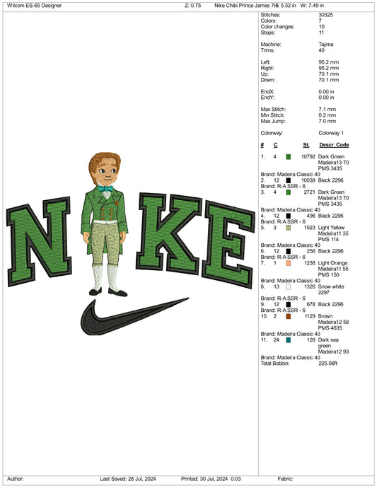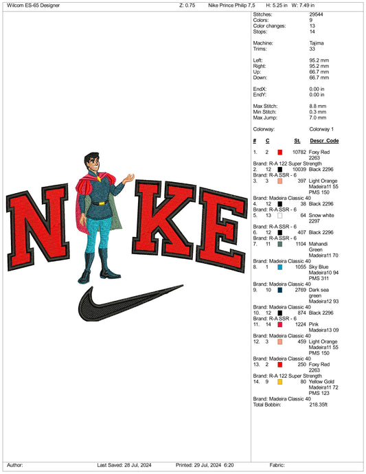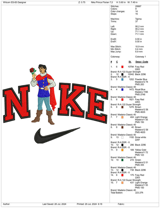 Nike Prince Florian Full Body Embroidery Design Files - 3 Size's