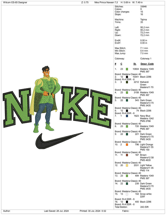 Nike Prince Naveen Embroidery Design Files - 3 Size's