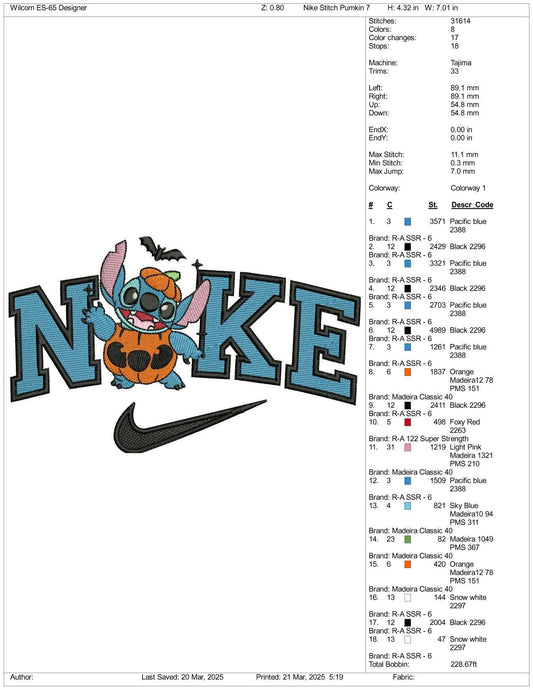 Nike Stitch Cosplay Pumpkin Embroidery Files - 3 Size's