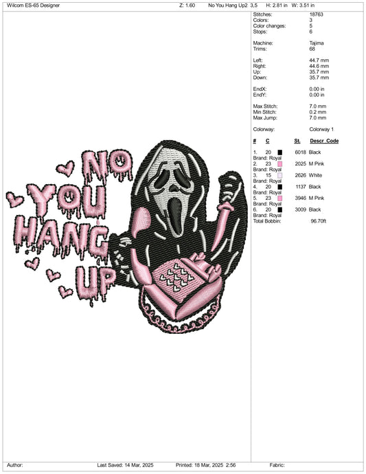 No You Hang Up v2 Embroidery Files - 3 Size's