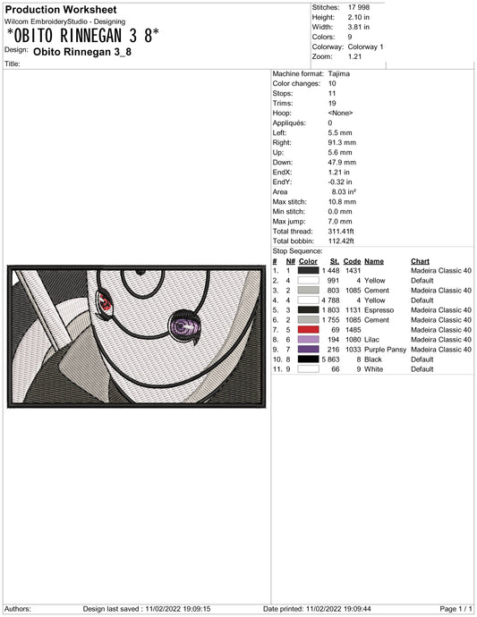 Obito Uchiha Embroidery Design Files - 3 Size's
