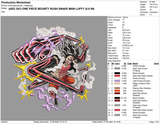 One Piece Bounty Rush Snake Man Luffy Embroidery Design Files - 4 Size's
